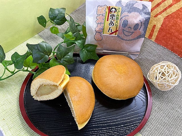 秋の味覚の栗をたっぷり使用した季節のどら焼きです。